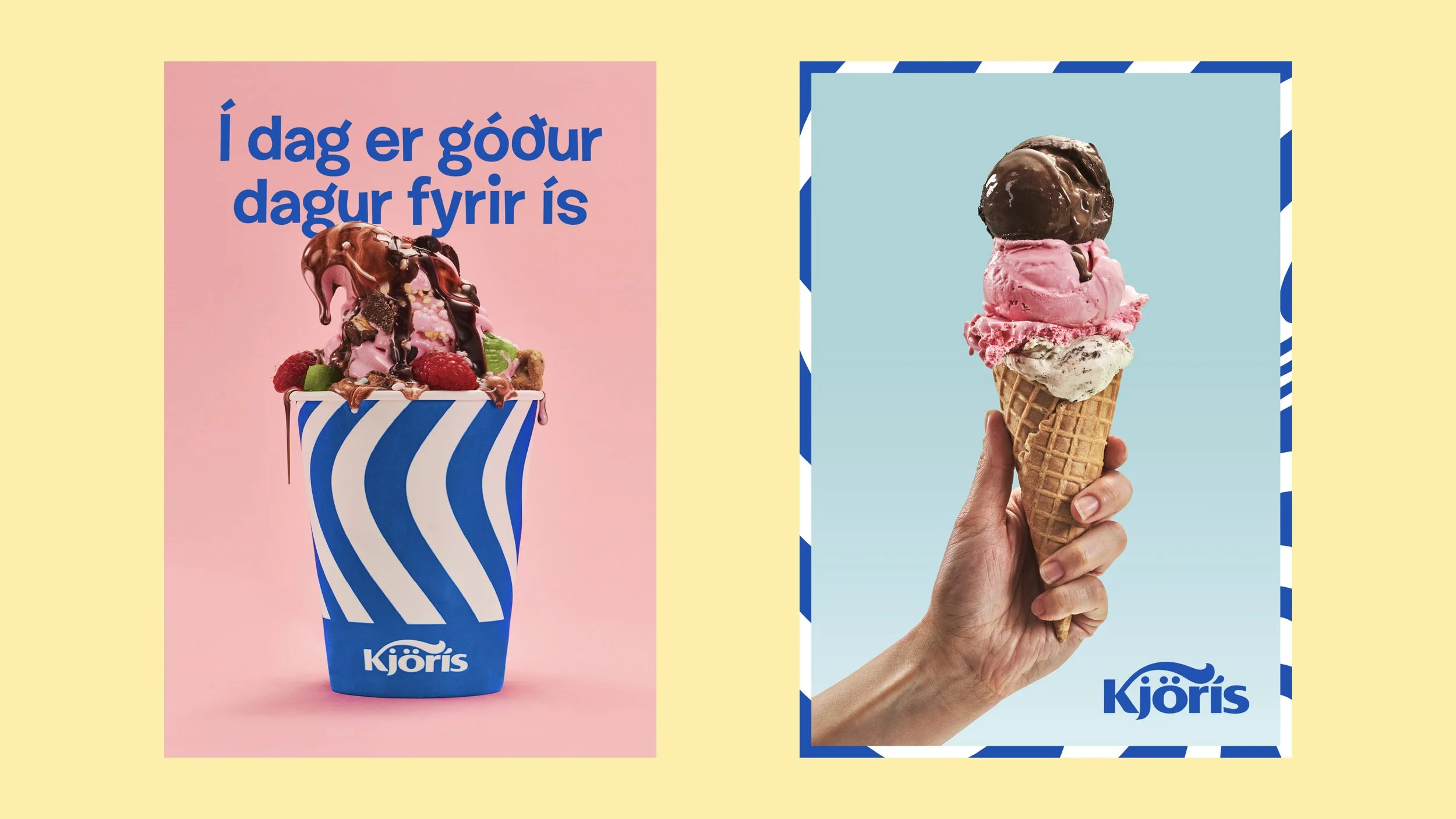 A campaign was rolled out to promote the new brand and Kjörís’s ice cream parlours. It fronted the messy but irresistible ice creams so that the viewer’s tastebuds would get watery and make their way straight to the next Kjörís’s parlour.